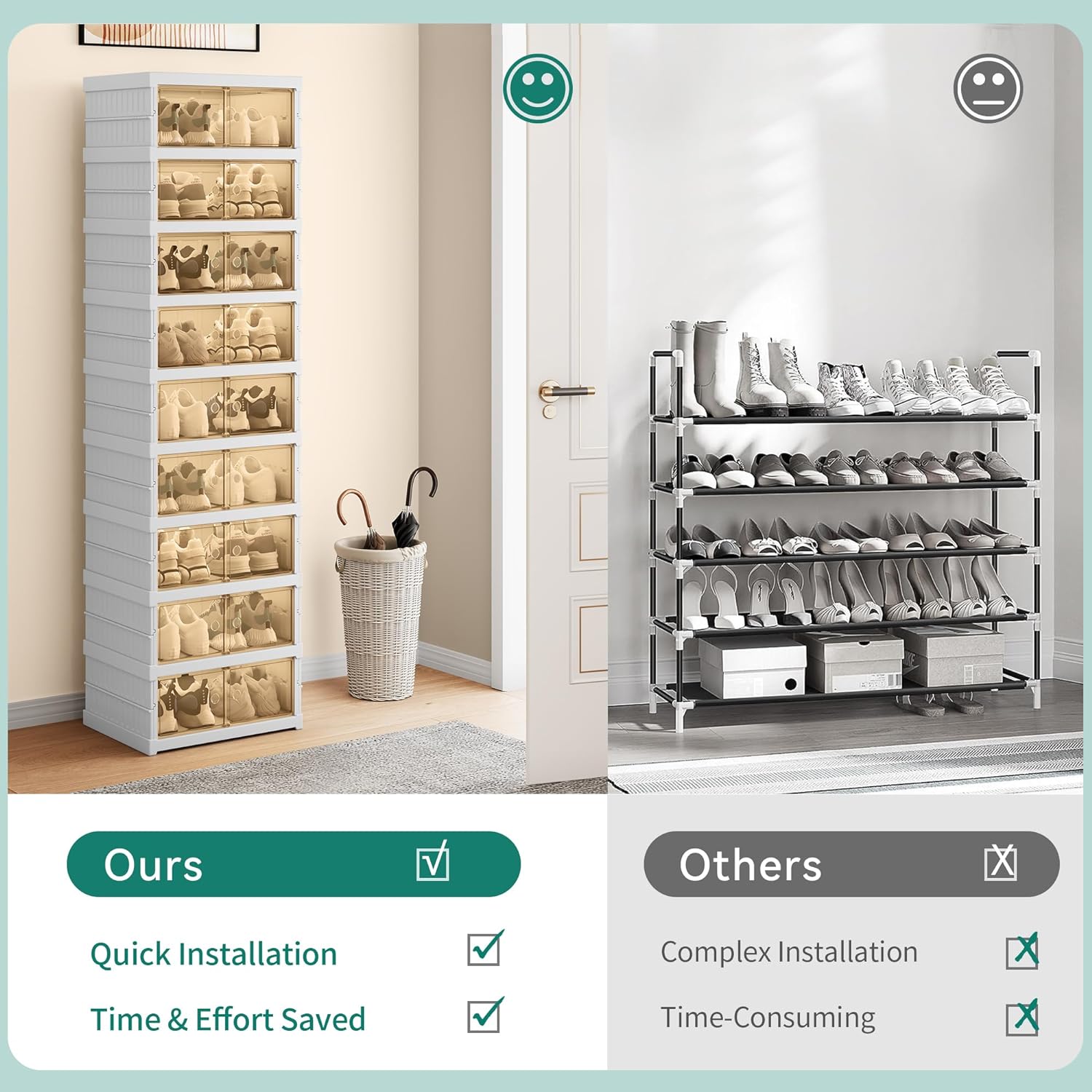 - Versatile for Different Scenarios: The foldable shoe box can be placed in the living room, bedroom, entrance and closet; It's sturdy enough to organize your items using little space; Tidy up your house while maximizing storage space for other items.