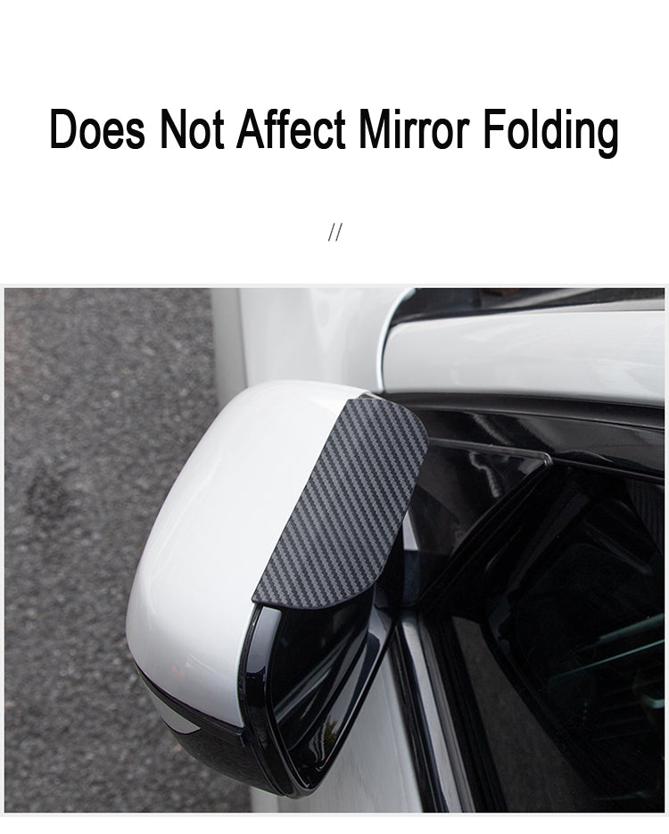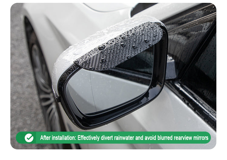2 pieces of rainproof sheets with new buckles, with special adhesive for auxiliary cars, safe, simple and firm. The product is made of carbon fiber material, which is environmentally friendly. Black can be matched with mirrors of any color. After installation, it will not affect the folding of the rearview mirror and will not block the line of sight.